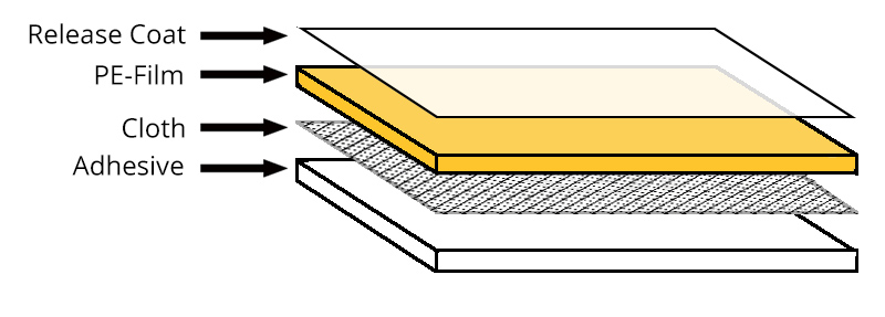 PE coated cloth tape with a rubber based adhesive. General purpose for bundling, vinyl repairing and packing.